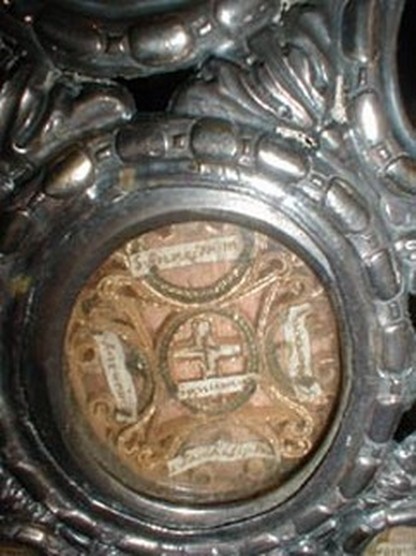 Il cimelio fu realizzato su ordinazione, per conservare e proteggere ben dieci reliquie, incastonate in cinque custodie, sigillate con ceralacca nella parte posteriore e autenticate con timbro dalle Autorità ecclesiastiche.