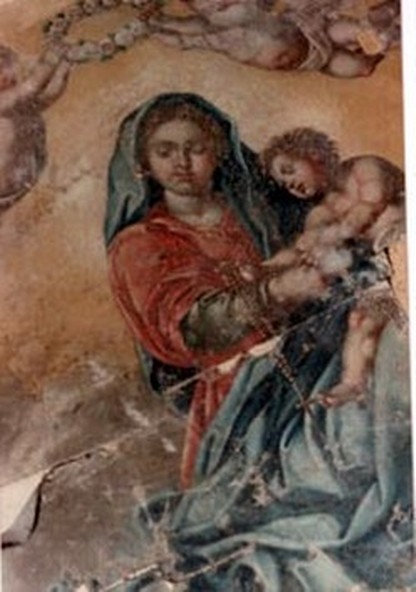 Di colori totalmente diversi e di fattura più antica è la seconda tela, raffigurante la Madonna del Rosario che il Parroco, Don Eugenio Anile, rinvenne buttata in un angolo del pulpito, quando prese possesso della Parrocchia, agli inizi degli anni sessanta.